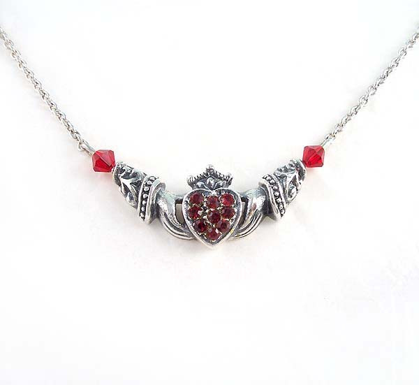 Click the button below to add the Claddagh Irish Sterling Silver Friendship Necklace, Red to your wish list.