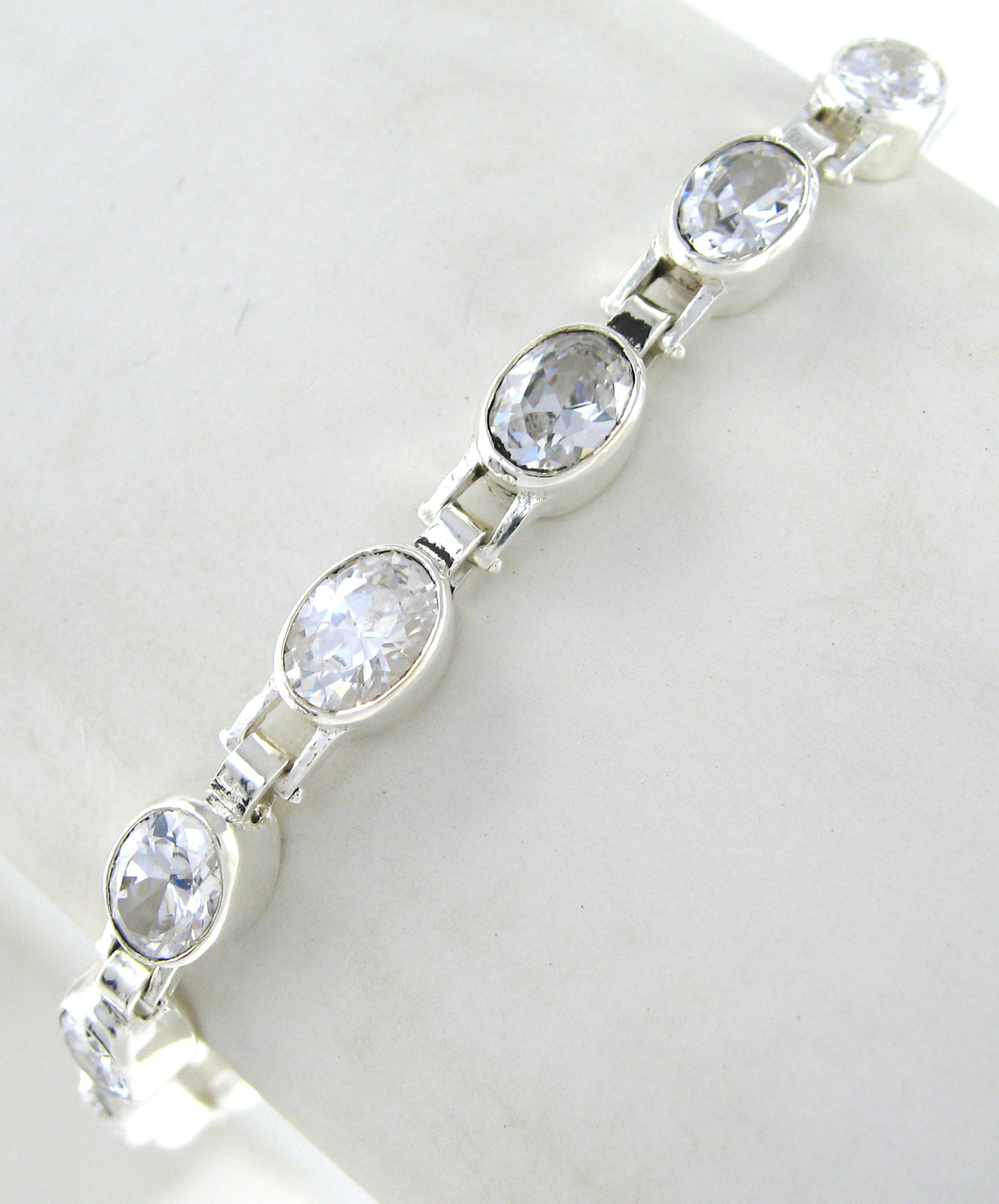 Sterling silver links set with oval crystals tennis bracelet. Approx. 7 1/4 inch long and finishes with a lobster clasp.