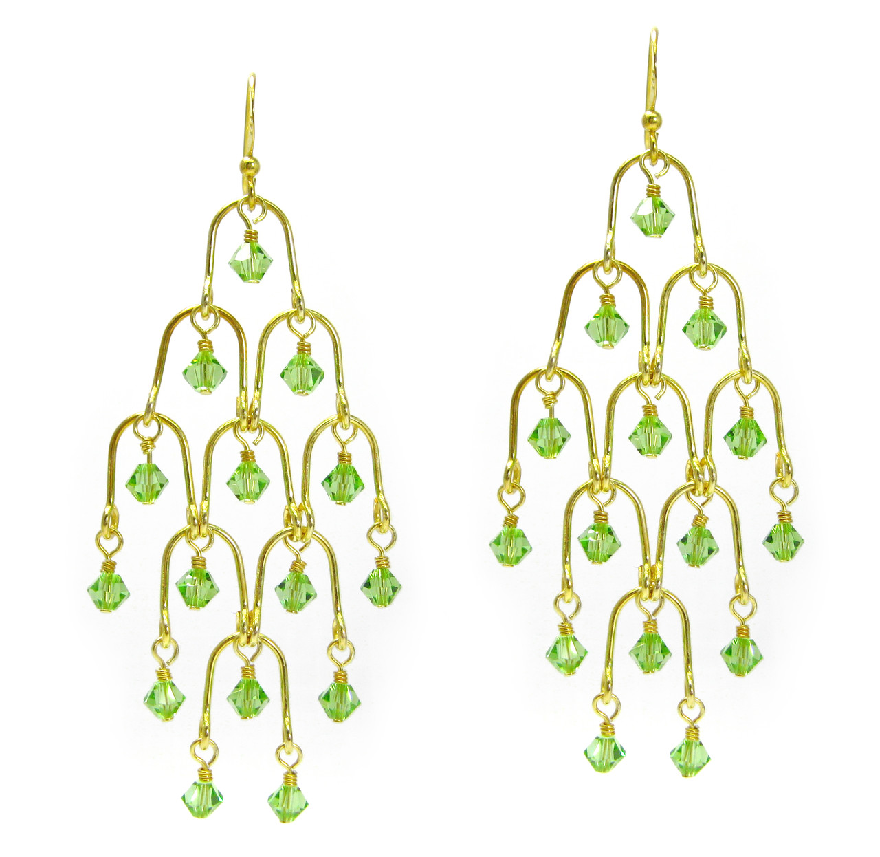 Gold Plated Sterling Silver Arches and Crystal Chandelier Earrings, Spring Green