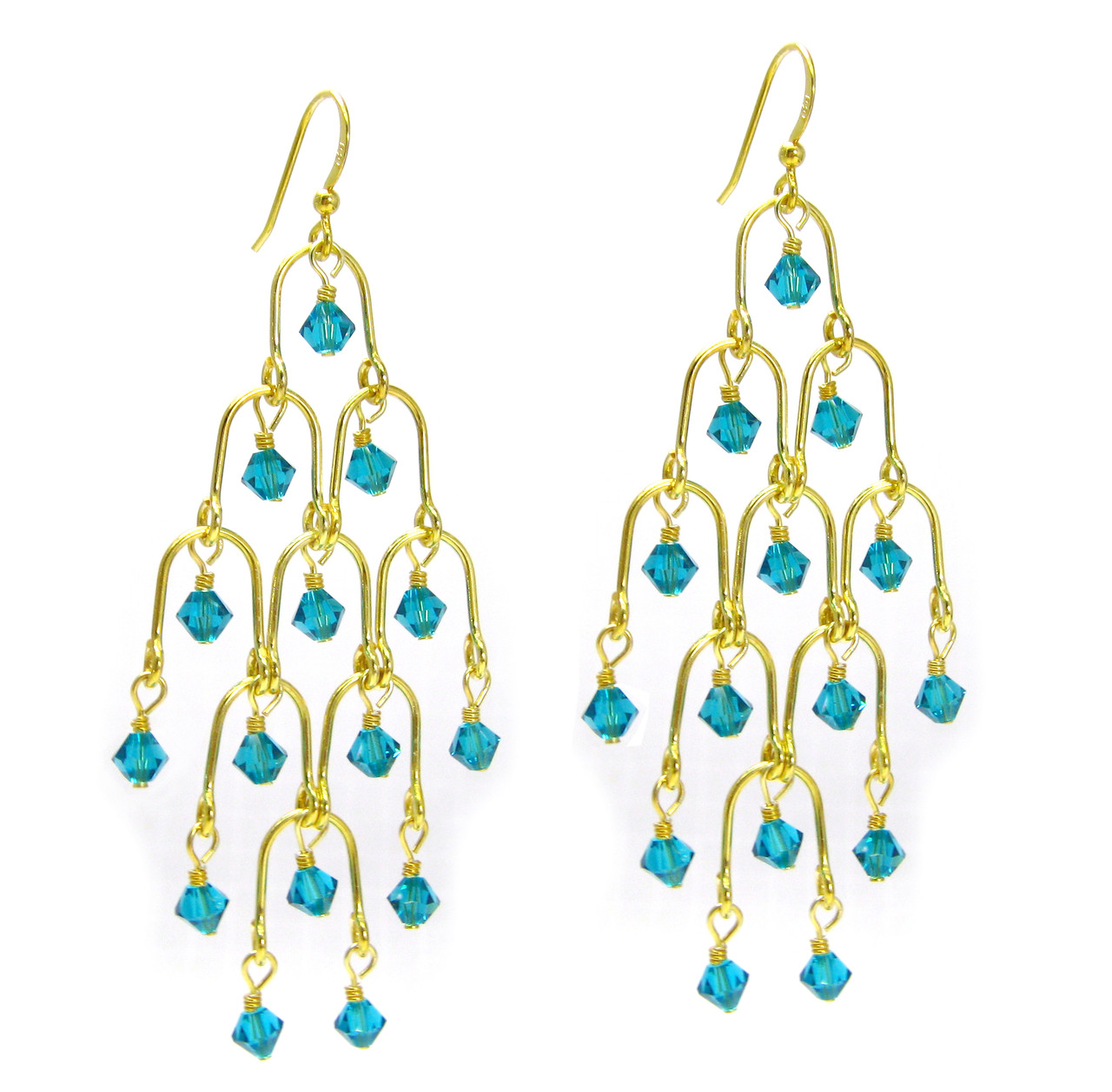 Loading... Please wait...Gold plated sterling silver Arches and crystal chandelier earrings. Drama and sparkles. You get the grandeur of this chandelier earrings but open and airy design doesn't weight you down. Earring is approx. 2 3/4 inch long from top of hook. Earring is approx. 1 1/8 inch wide. Fishhook for pierced ears.