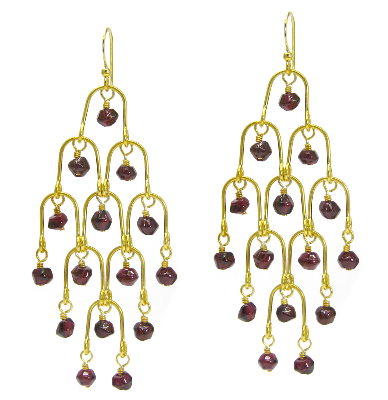 Loading... Please wait...Gold plated sterling silver Arches and gemstone chandelier earrings. Drama and elegance. You get the grandure of this chandelier earrings but open and airy design doesn't weight you down. Earring is approx. 2 3/4 inch long from top of hook. Earring is approx. 1 1/8 inch wide. Fishhook for pierced ears.
