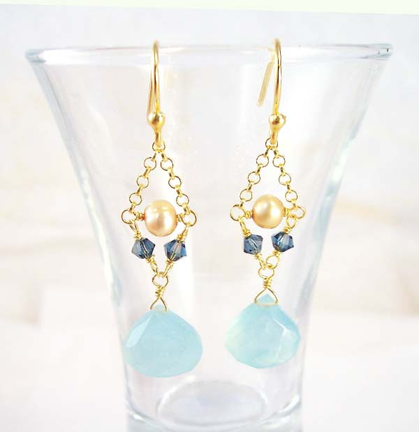 Click the button below to add the Gold Plated Sterling Silver Bead Chain Stone Drop Earrings, Blue Chalcedony to your wish list.