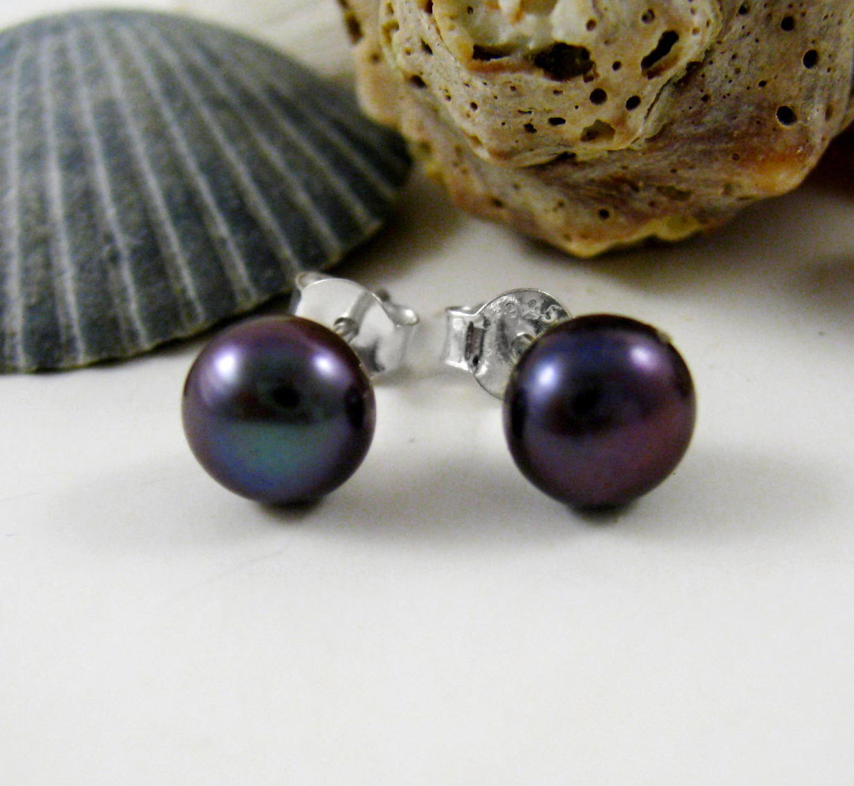 Click the button below to add the Sterling Silver 6-8mm Cultured Pearl Stud Post Earrings, Peacock to your wish list.