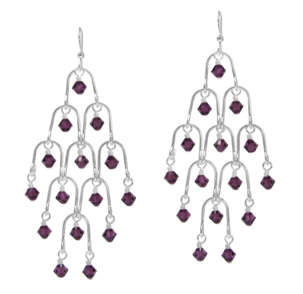 Elegant silver curve arches linked together and accent with sparkling crystals. Earrings is a dramatic 2 3/4 inch drop including the hooks. Earring is approx. 1 1/8 inch wide. Fishhook for pierced ears. Photo enlarged to show details.