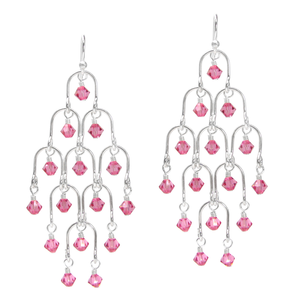 Sterling Silver Arches and Crystal Chandelier Earrings, Rose Pink