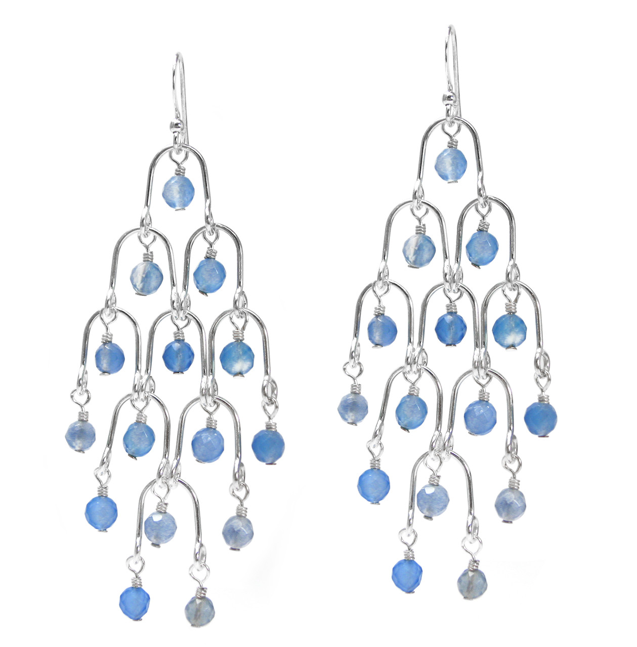 Sterling Silver Arches and Crystals Chandelier Earrings, Blue Quartz
