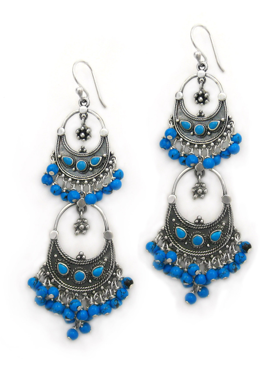 Click the button below to add the Sterling Silver Aryana Two Tiered Chandelier Earrings, Blue Howlite to your wish list.