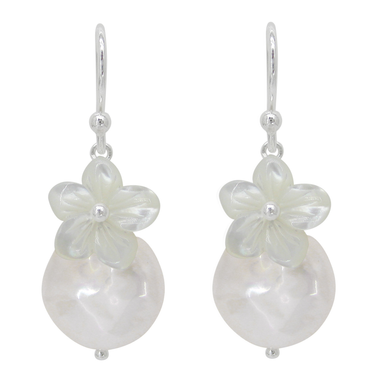 Have fun in the sun with this pair of coin pearl topped with flower carved mother-of-pearl stone.