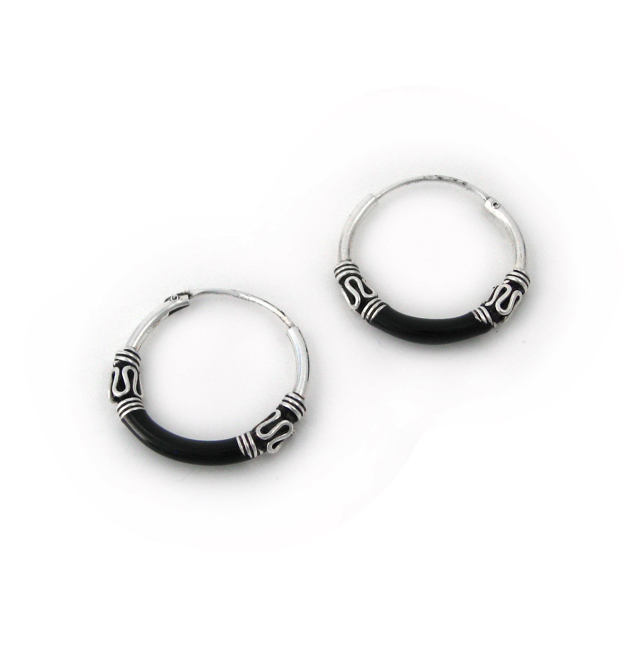 Click the button below to add the Sterling Silver Bali Design Color Coated 16mm Hoop Earrings, Black to your wish list.