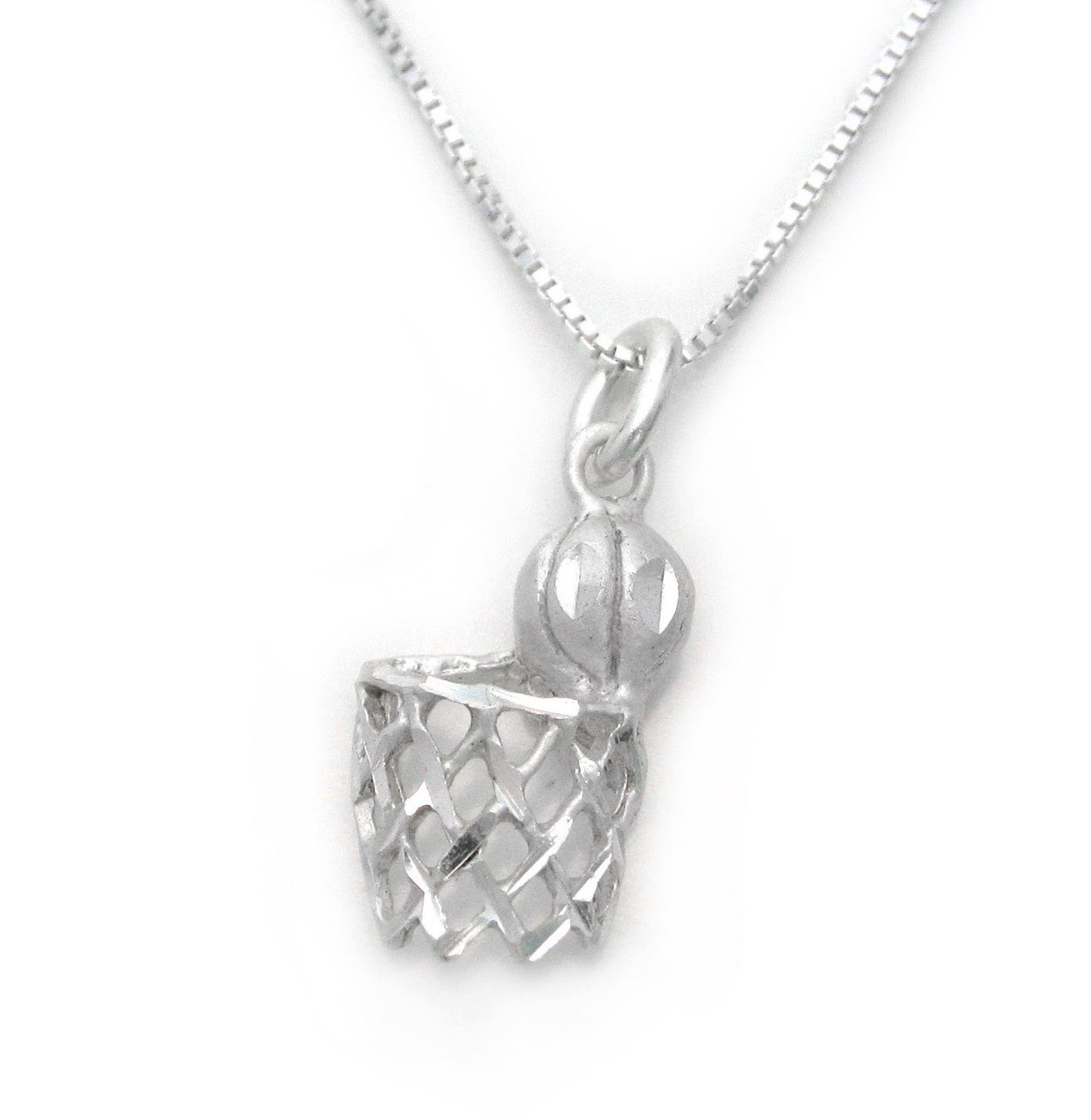 Click the button below to add the Sterling Silver Basketball and Hoop Net Etched Charm Necklace to your wish list.