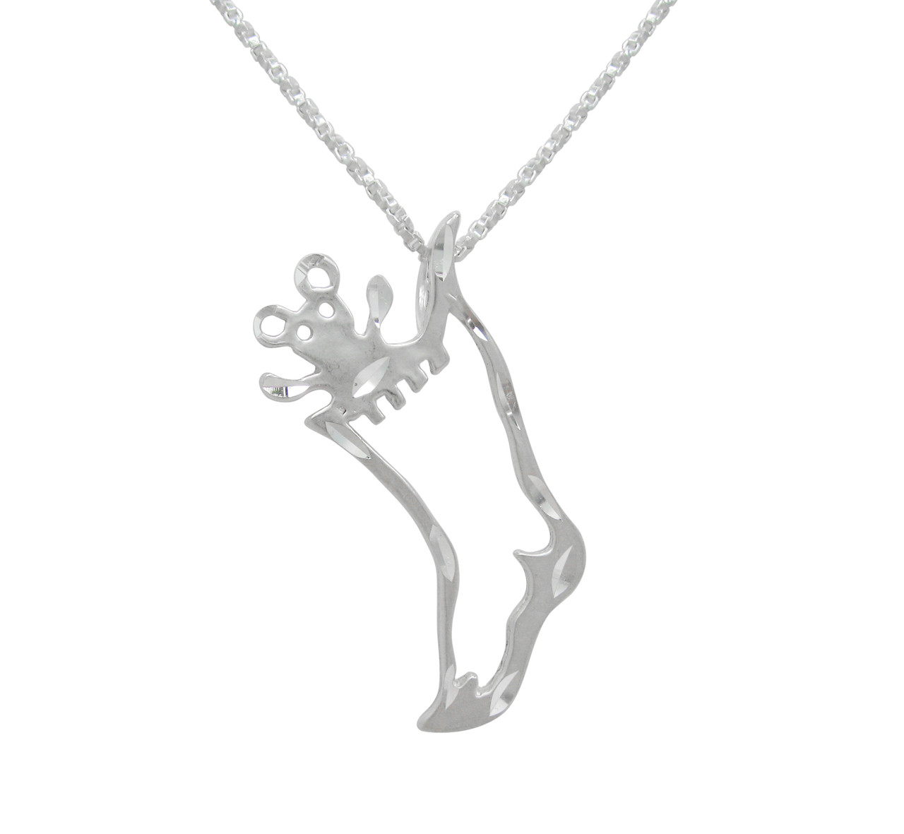 Sterling silver bear in stocking Christmas charm pendant necklace. Charm is approximately 9/16 inch (15mm) from toe to heel and 1 1/4 inch (31mm) tall. Pendant has diamond cut etch details.