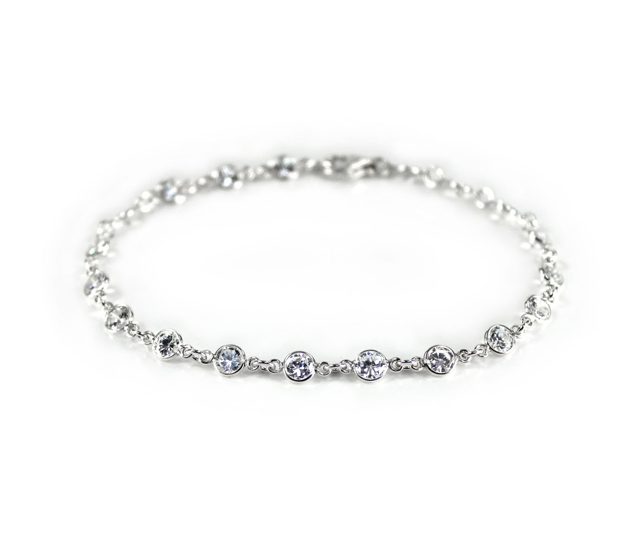 Click the button below to add the Sterling Silver Bezel Round Crystals Link Bracelet, Clear to your wish list.