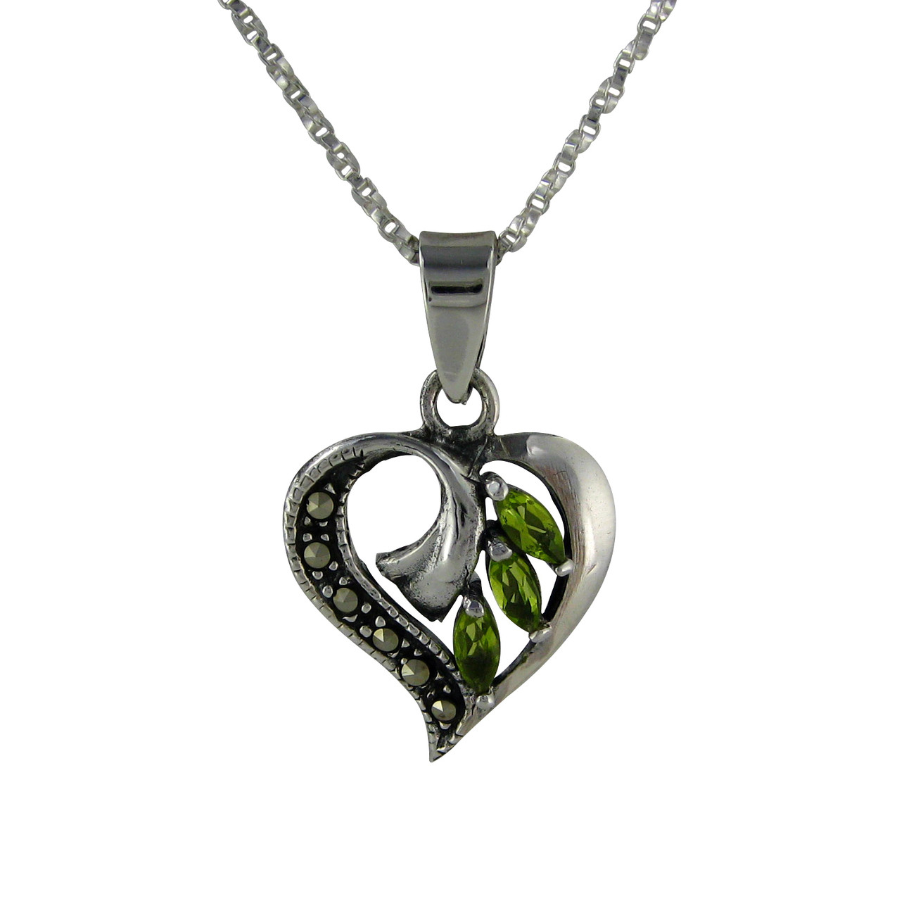 Click the button below to add the Sterling Silver Birth Crystal Marcasite Heart Pendant Necklace, August Green to your wish list.