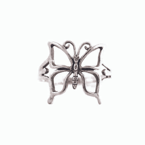 Prominent but airy butterfly ring in sterling silver. Open and light butterfly design is sure to get noticed. Butterfly is approximately 9/16 inch (15mm) tall.
