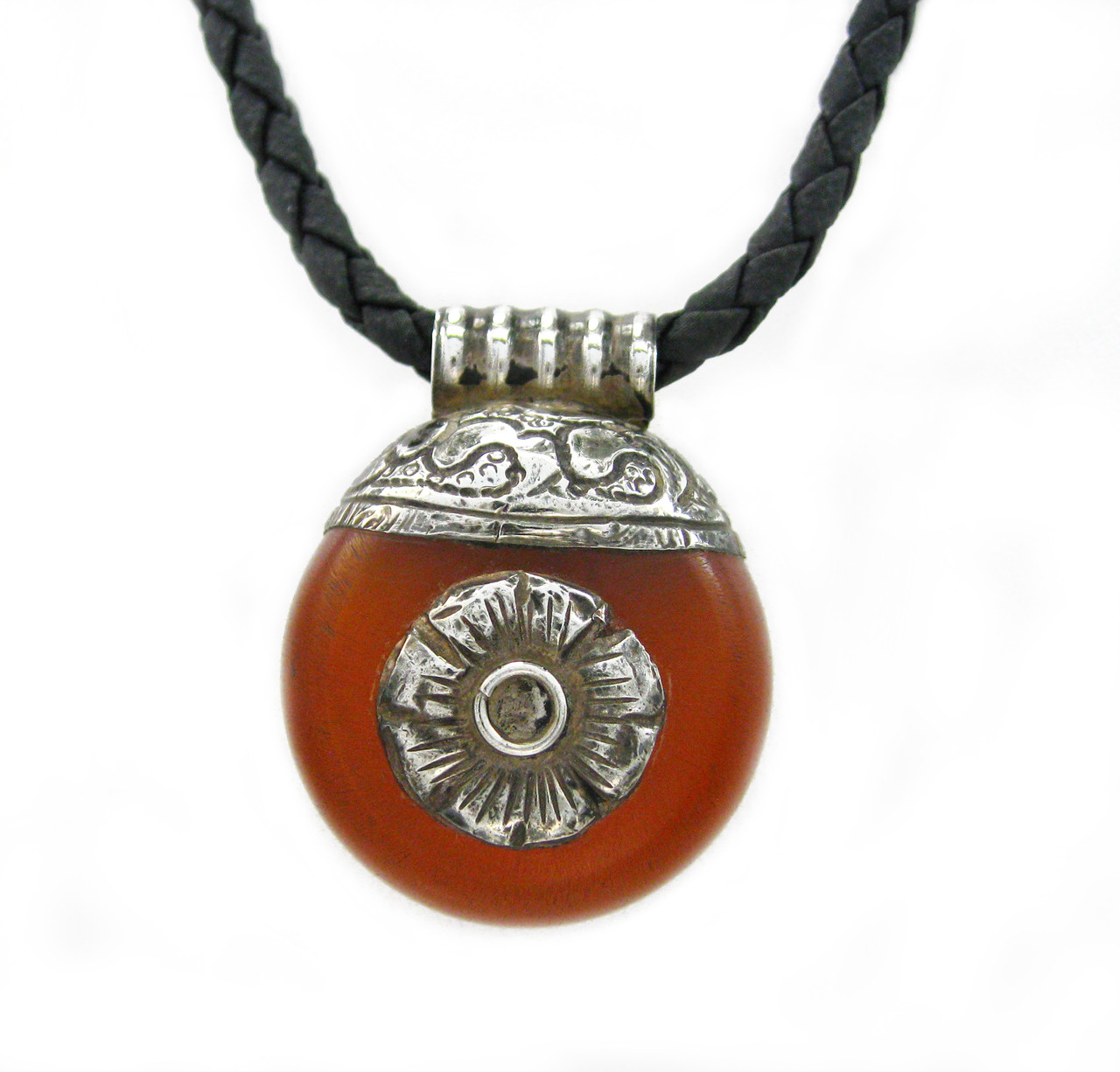 Loading... Please wait...Carnelian pendant slider style on woven leather sterling silver necklace. Necklace is approximately 16 inch long and finishes with a hook clasp. Pendant is approximately 1 1/4 inch tall and 15/16 inch wide. Natural stone may vary in color and inclusions.