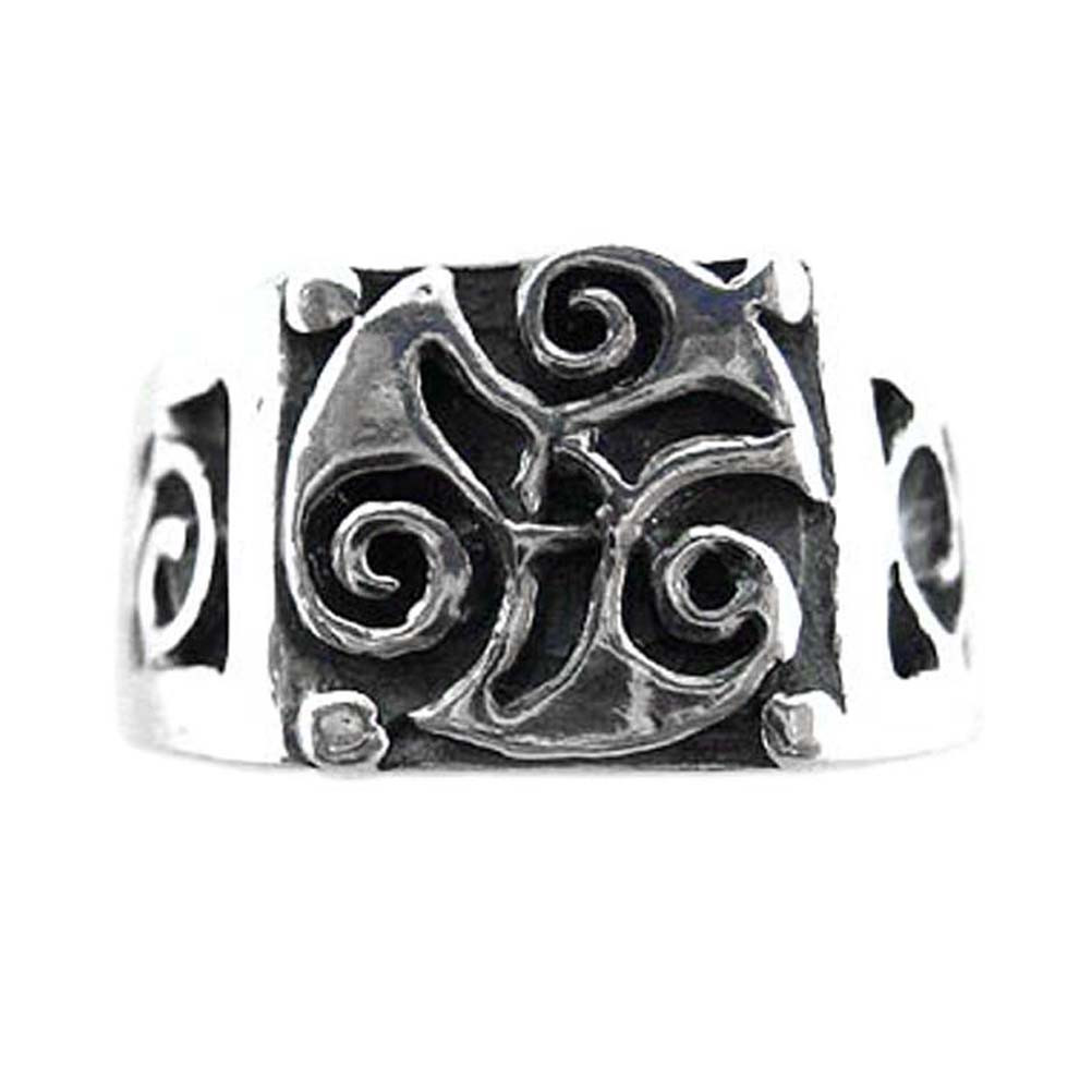 Sterling silver celtic signet ring with round tribal pattern. The sides have cutout scroll design. Front is 10 mm square.