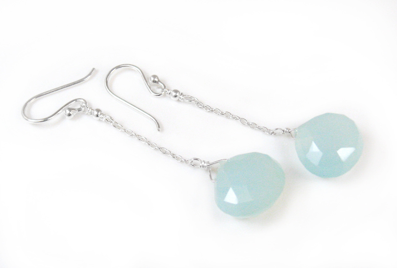 Click the button below to add the Sterling Silver Chain Stone Drop Earrings, Blue Chalcedony to your wish list.