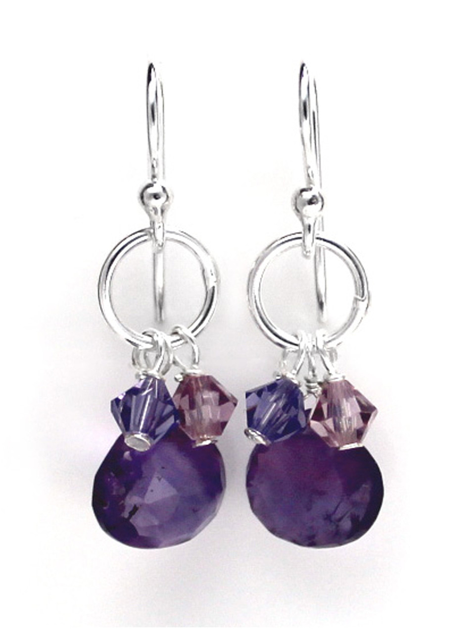 Click the button below to add the Sterling Silver Circle Charm Bead Stone Drop Earrings, Amethyst to your wish list.