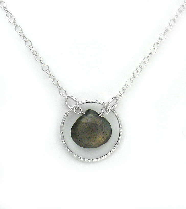 Click the button below to add the Sterling Silver Circle Charm Center Teardrop Stone Chain Necklace, Labradorite to your wish list.