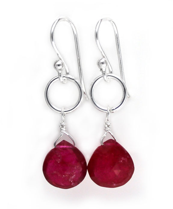 Loading... Please wait...Sterling silver circle charm and teardrop stone drop earrings. Circle charm is approximately 1/4 inch wide (7mm). Earring is approximately 1 3/16 inch drop. Natural stone may very in color and inclusions. Fishhook for pierced ears.