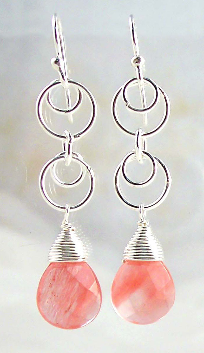 Click the button below to add the Sterling Silver Circle Charms Link Drop Earrings, Cherry Quartz to your wish list.