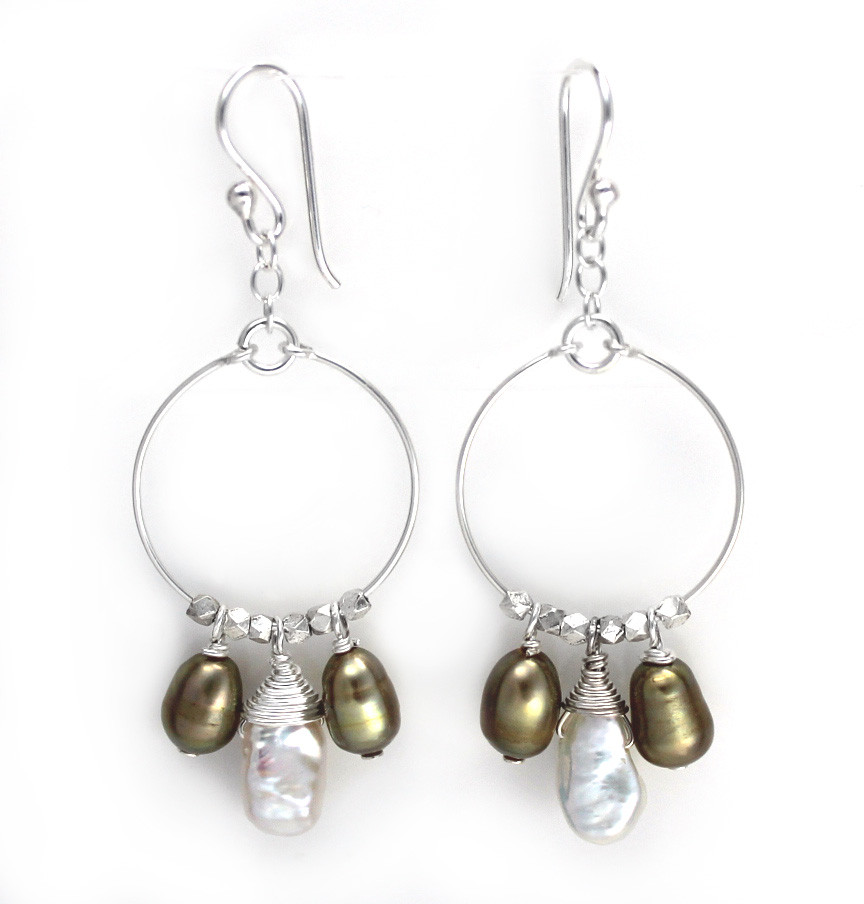 Click the button below to add the Sterling Silver Circle Wire Keshi and Pearls Drop Earrings, Olive to your wish list.