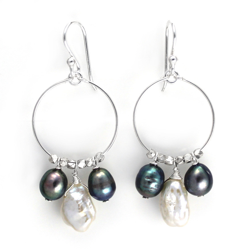Click the button below to add the Sterling Silver Circle Wire Keshi and Pearls Drop Earrings, Peacock to your wish list.