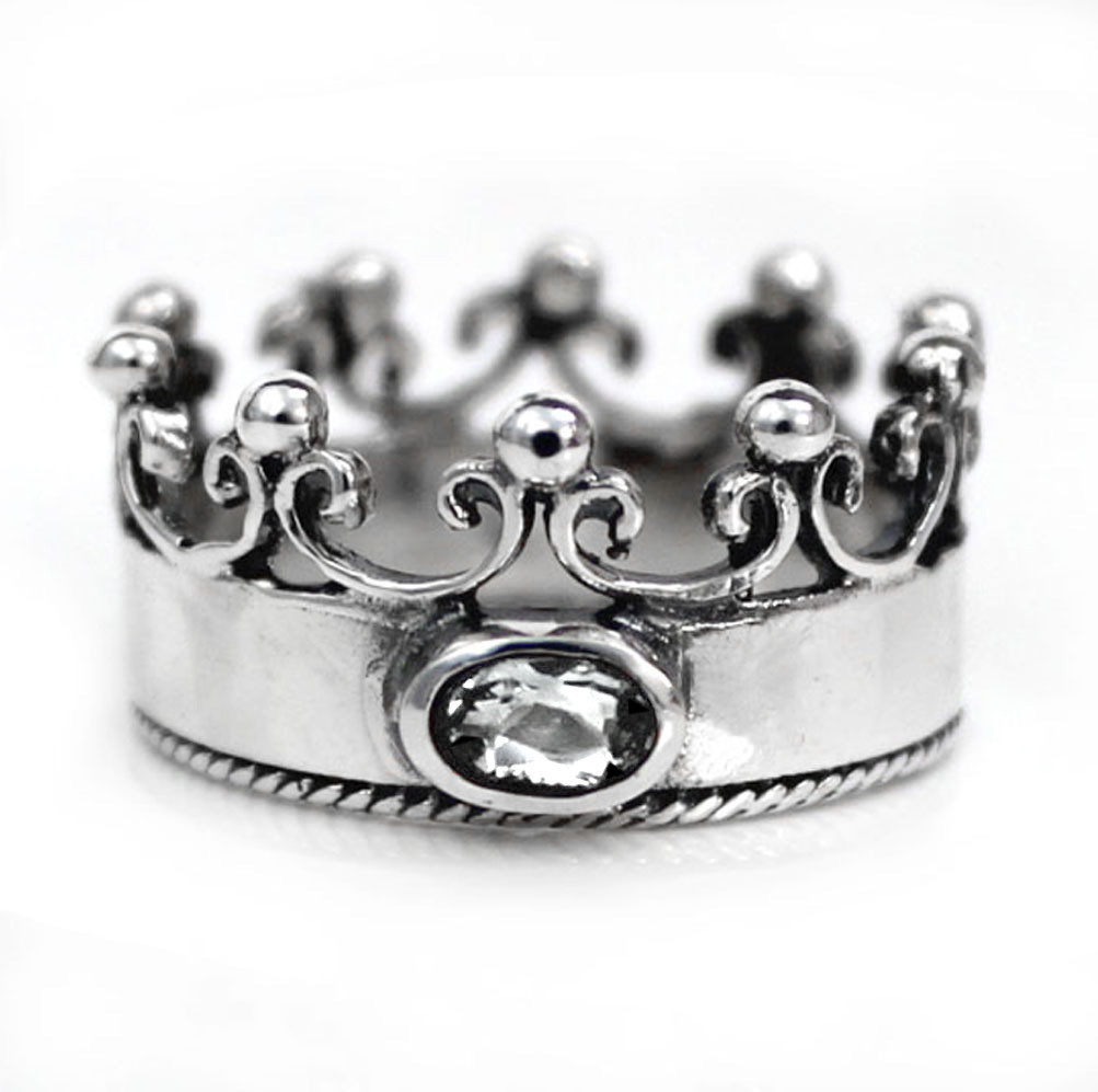 Crown and sparking crystal sterling silver ring. Fit for a princess. Ring is approximately 1/2 inch (10mm) tall. Sparkling crystal is 6mm wide and 4mm tall oval shaped. Photo enlarged to show details.