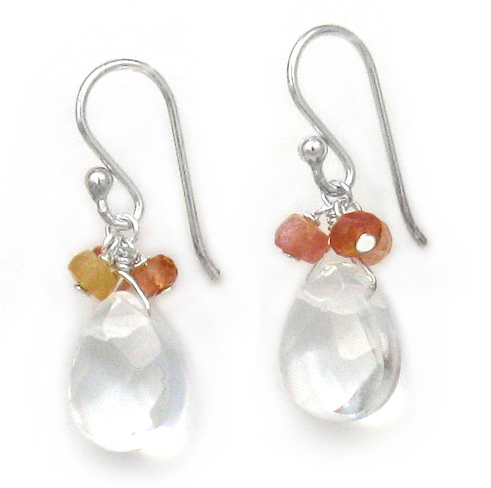 Sterling Silver Crystal Briolette Drops and Stone Cluster Earrings, Clear