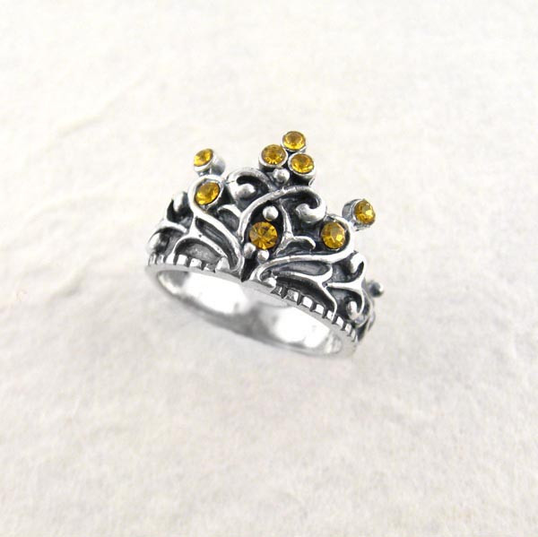 Click the button below to add the Sterling Silver Crystal Crown "Tiara" Ring, Yellow to your wish list.