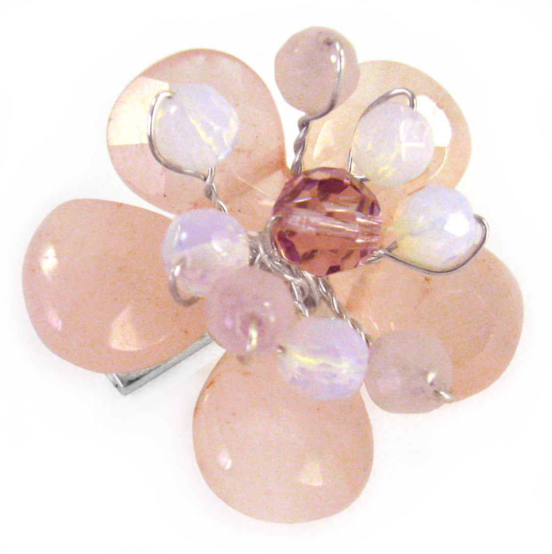 Sparkling crystals are artistically wire wrapped into flower brooch. A perfect little piece for you blazer or jacket. Hand wire wrapped. Flower is approximately 1 inch wide. Photo enlarged to show details.