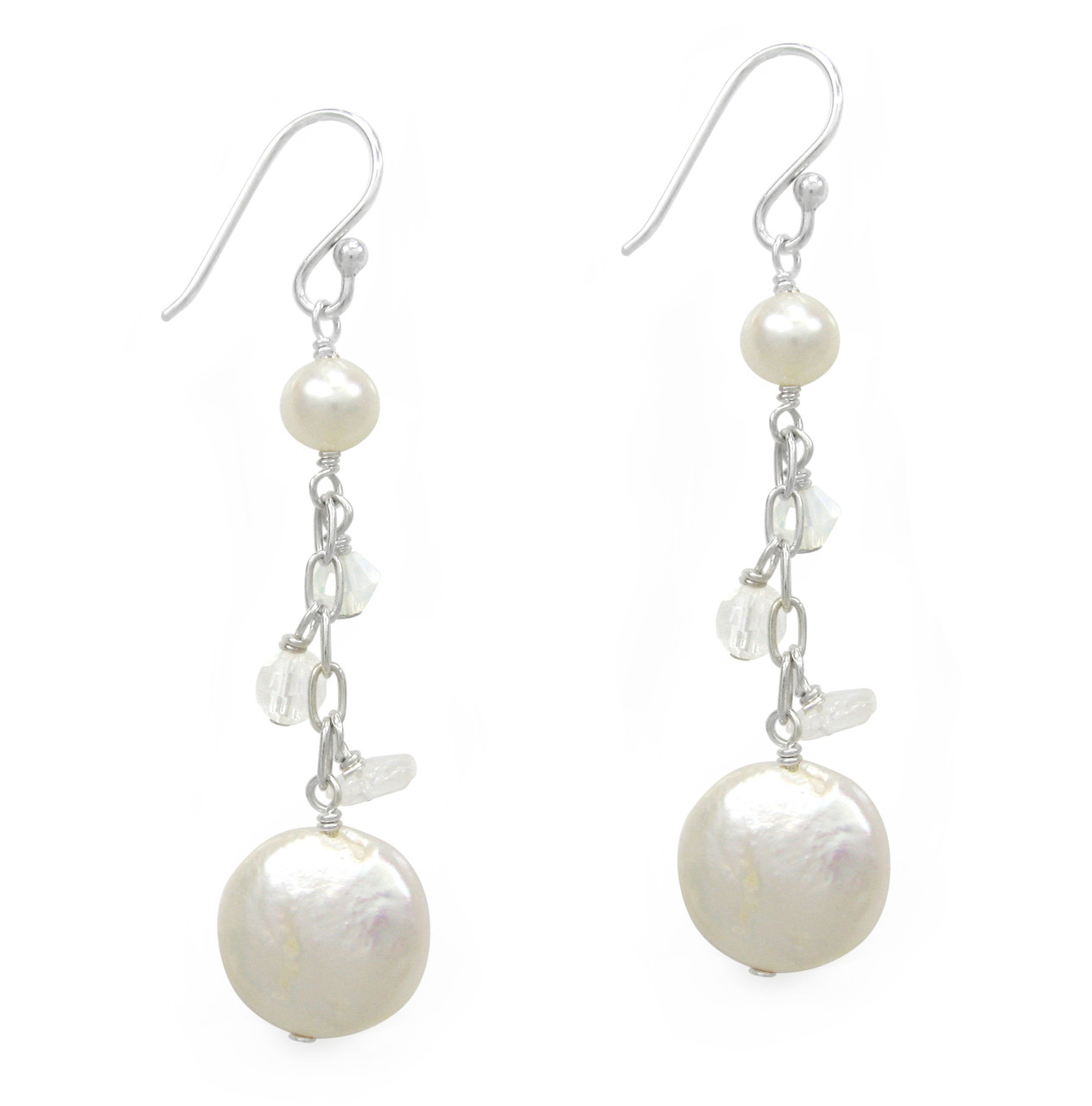 Click the button below to add the Sterling Silver Cultured Coin Pearl Beaded Chain Drop Earrings, White to your wish list.