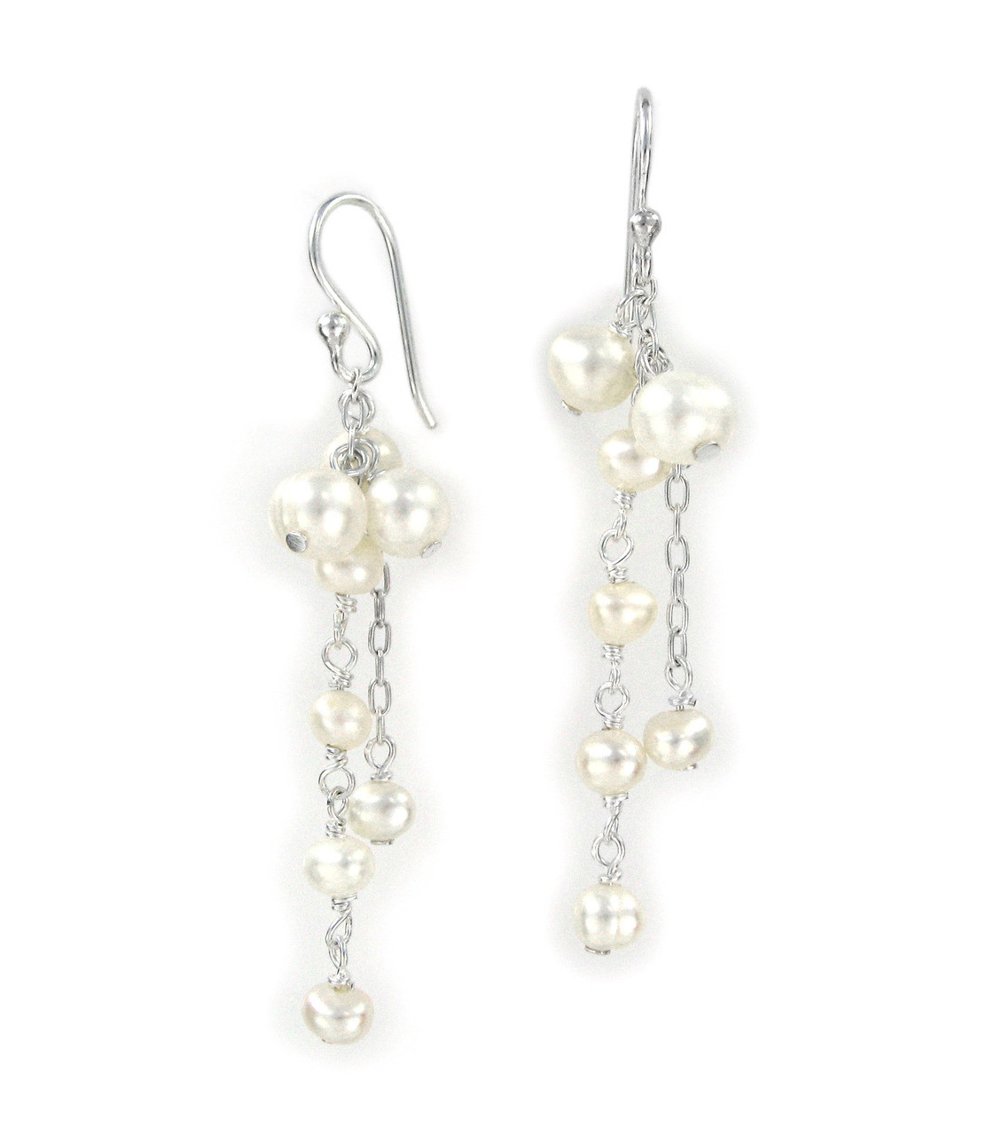 Click the button below to add the Sterling Silver Cultured Pearl Cluster Link Drop Earrings, White to your wish list.