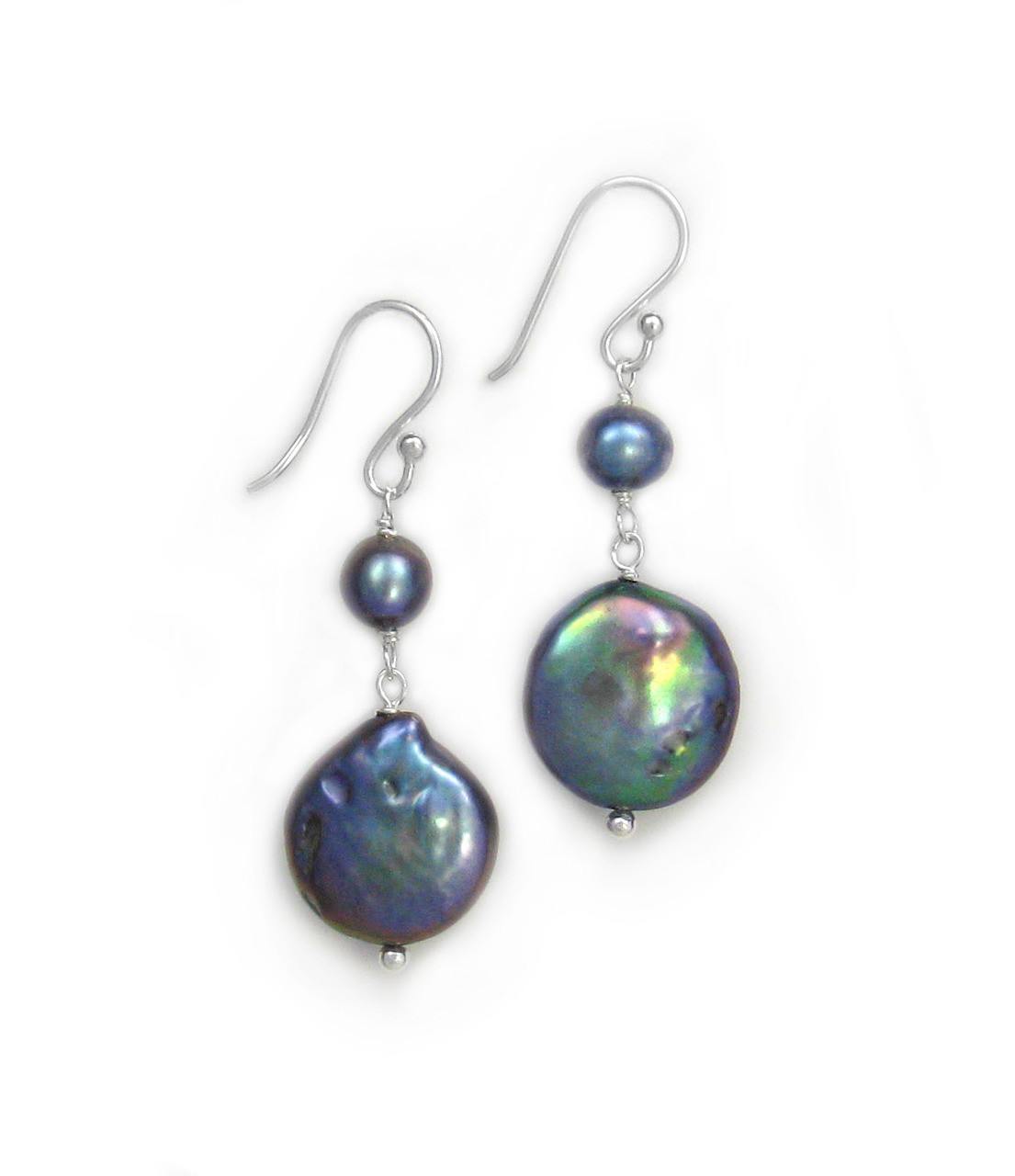 Click the button below to add the Sterling Silver Cultured Pearl Link Coin Pearl Drop Earrings, Peacock to your wish list.