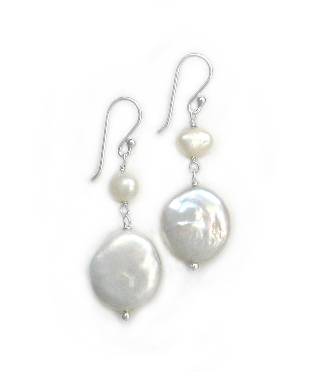 Click the button below to add the Sterling Silver Cultured Pearl Link Coin Pearl Drop Earrings, White to your wish list.