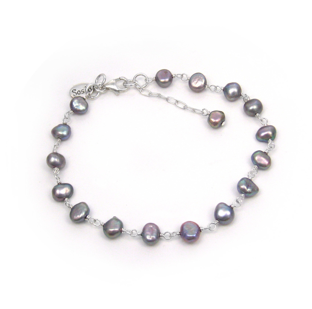 Click the button below to add the Sterling Silver Cultured Pearl Wirewarpped Link Bracelet, Gray to your wish list.