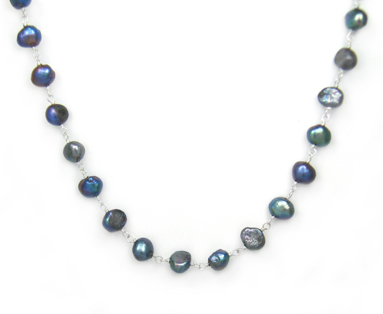 Click the button below to add the Sterling Silver Cultured Pearl Wirewrapped Link Necklace, Peacock to your wish list.