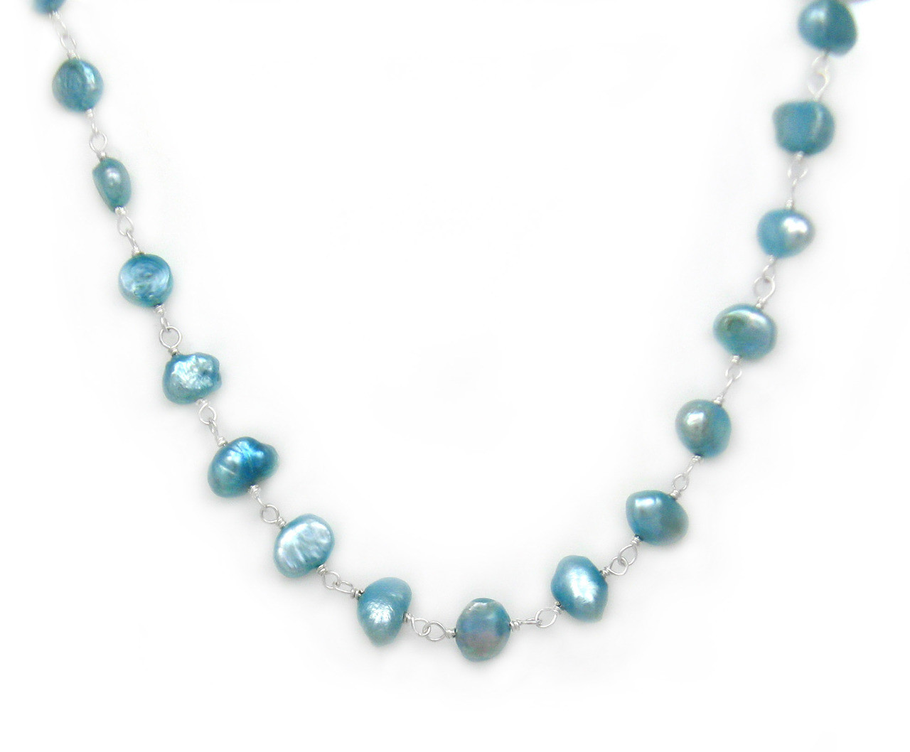 Click the button below to add the Sterling Silver Cultured Pearl Wirewrapped Link Necklace, Sky Blue to your wish list.
