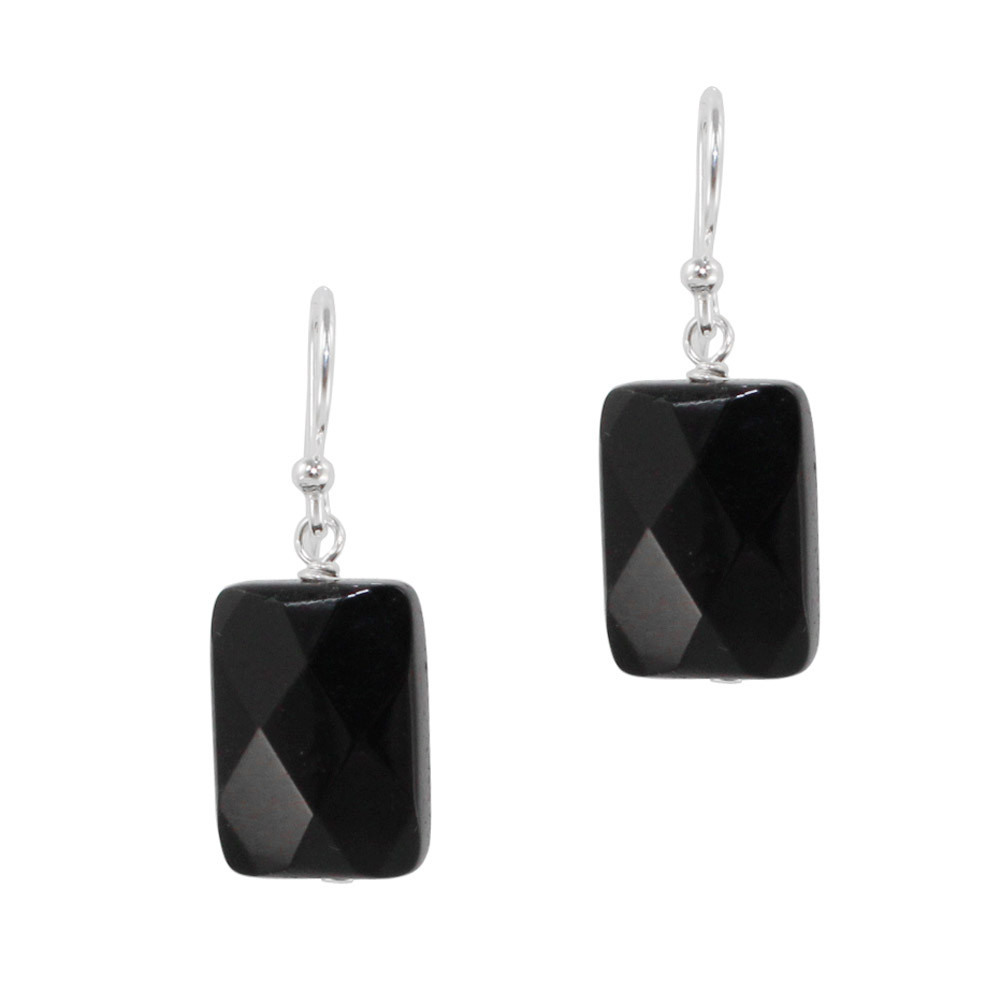 Faceted Rectangle-cut Stone Dangling Earrings. Approximately 1 1/8 inch drop.