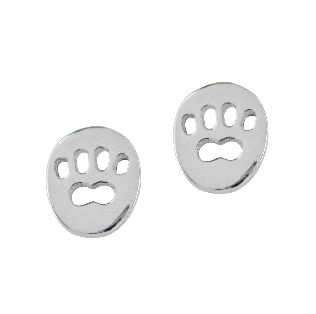 Loading... Please wait...Show your love for your furry friends with these sterling silver paw print stud post earrings. Approximately 5/16 inches wide and 3/8 inch tall. Cutout design on polished silver, a modern look. Appropriate for everyday wear. Photo enlarged to show details.