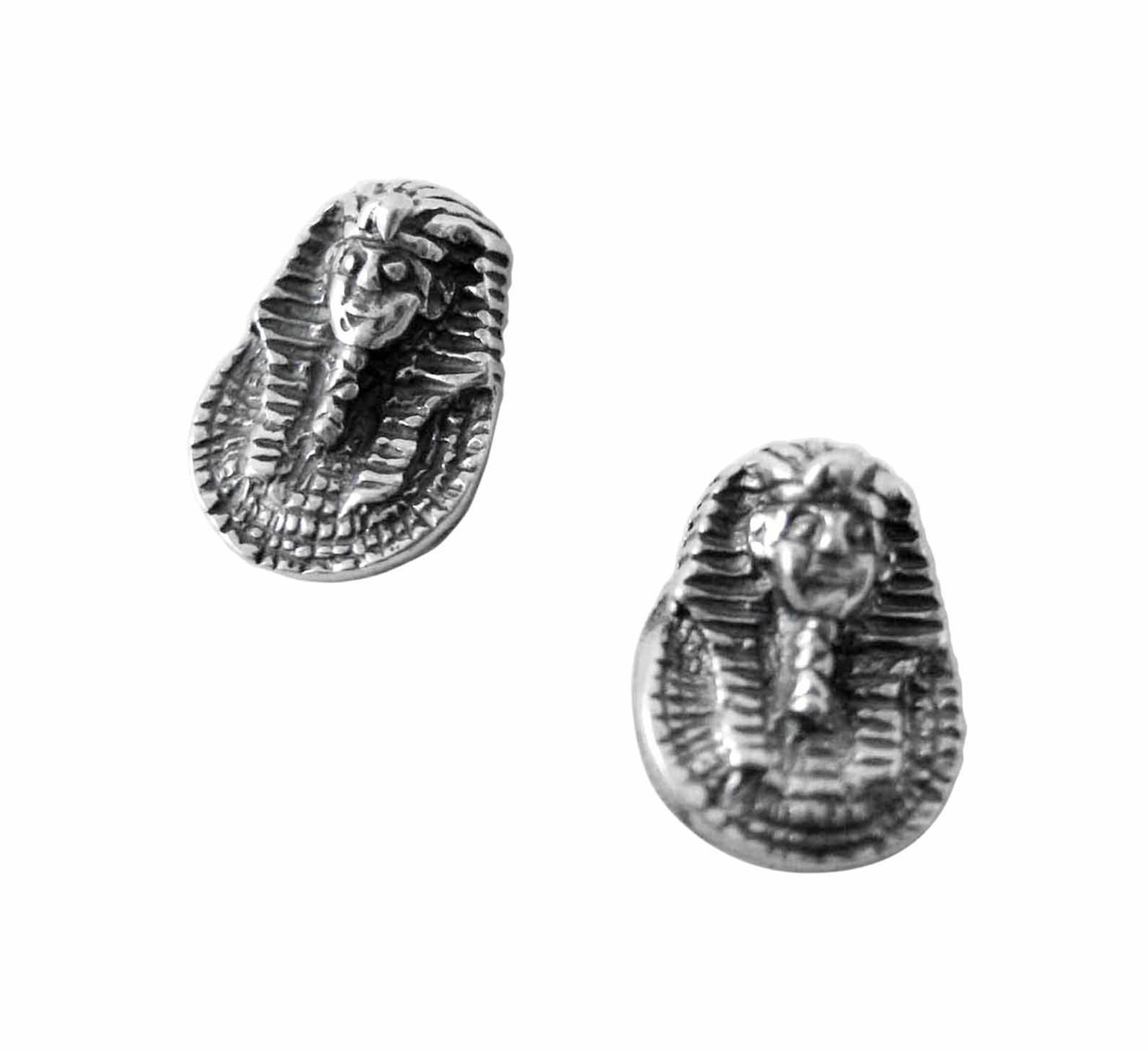 Egyptian pharaoh post earrings. Bring a little Egyptian history to your everyday outfits. Antiqued to enhance details. Photos enlarged to show details, please see features for measurements.