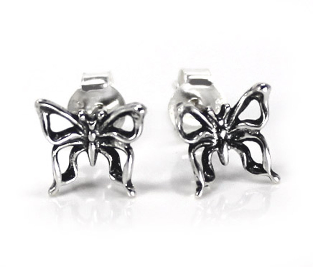 Elegant butterfly with open wings earring is perfect to wear everyday! Small in size but big in details! Polished silver with antique finish. Photo enlarged to show details.