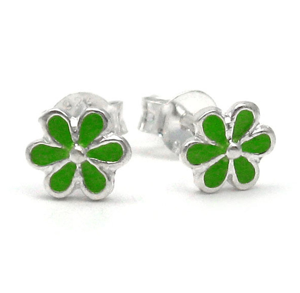 Click the button below to add the Sterling Silver Enamel Daisy Flowers Stud Post Earrings, Green to your wish list.