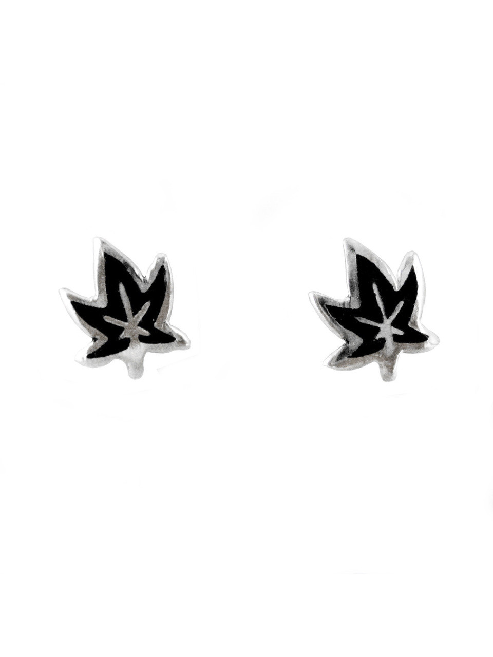 Click the button below to add the Sterling Silver Enamel Maple Leaf Stud Post Earrings, Black to your wish list.