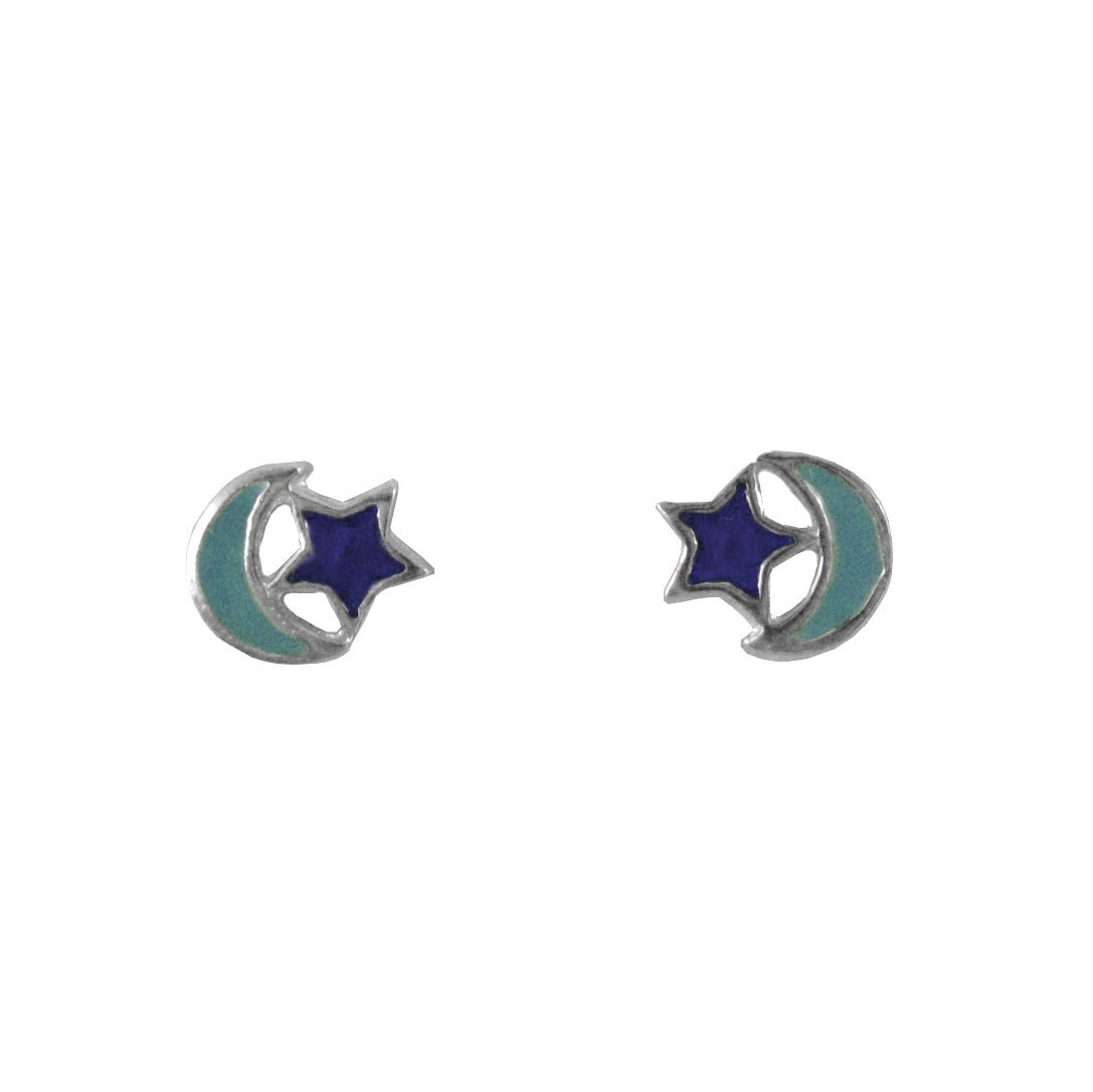 Click the button below to add the Sterling Silver Enamel Moon and Star Stud Post Earrings to your wish list.