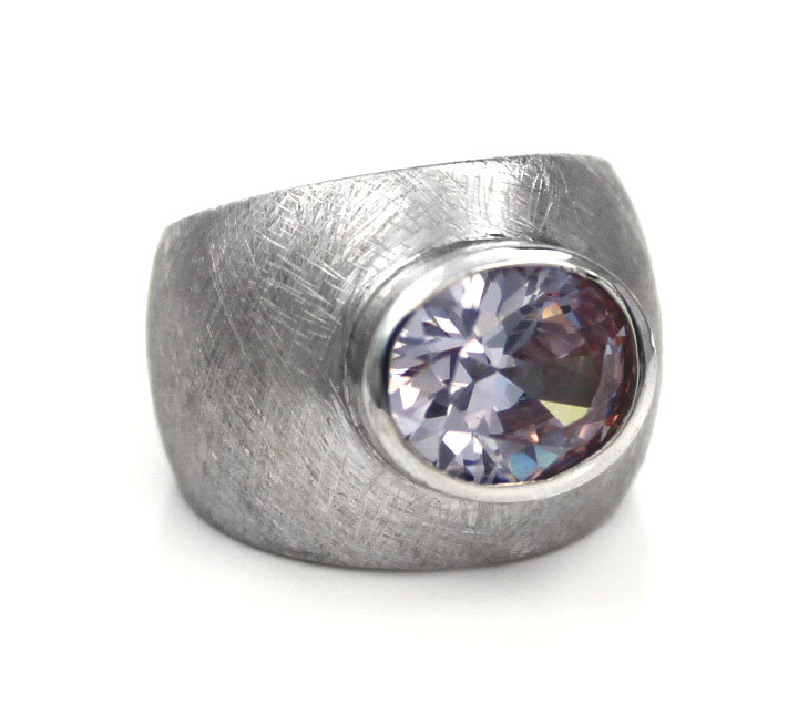 Sterling Silver Etched Finish Crystal Ring, Lavender