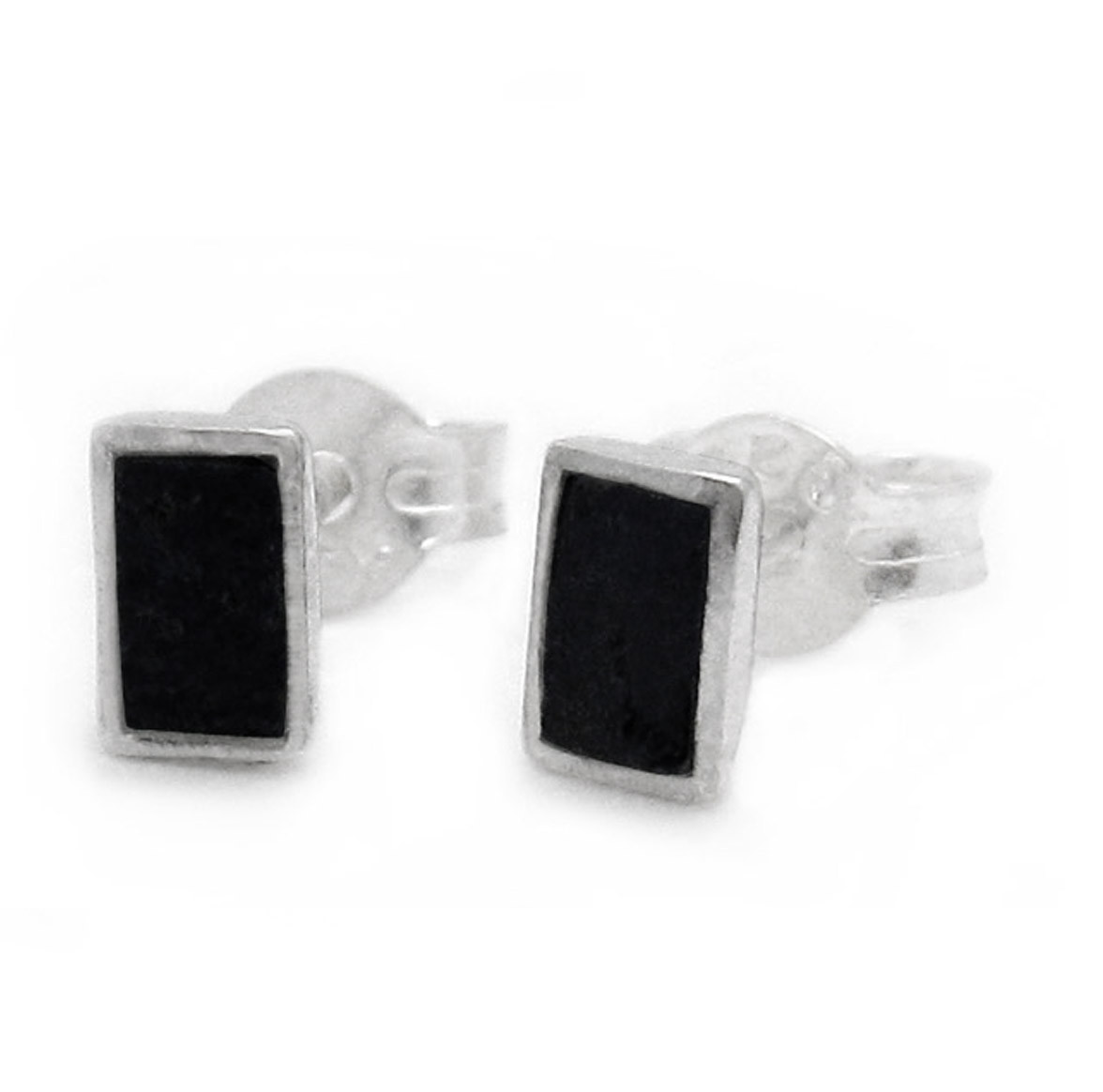 Small little rectangles of color for your ears. Perfect to wear everyday and small enough to wear on the secondary piercing. Earring measures approx. 1/8 inch wide (3mm) and 3/16 inch tall (5mm). Sterling silver and reconstituted stone. Post and butterfly backs for pierced ears. Photo enlarged to show details.