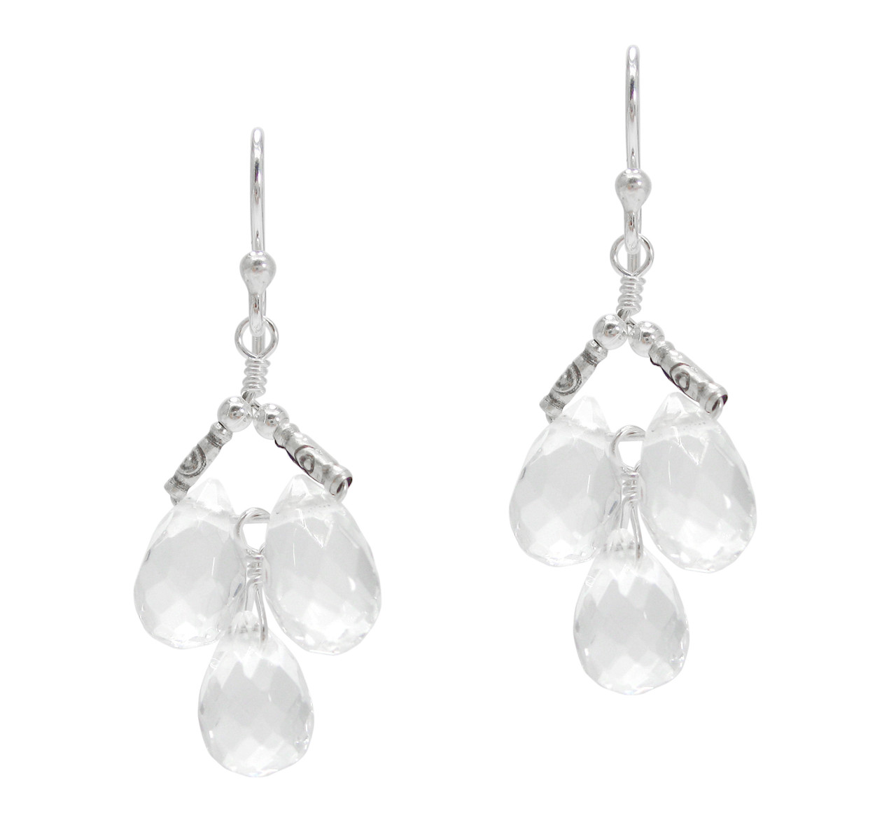 Click the button below to add the Sterling Silver Faceted Teardrops Three Stone Wire-Wrapped Earrings, Clear to your wish list.
