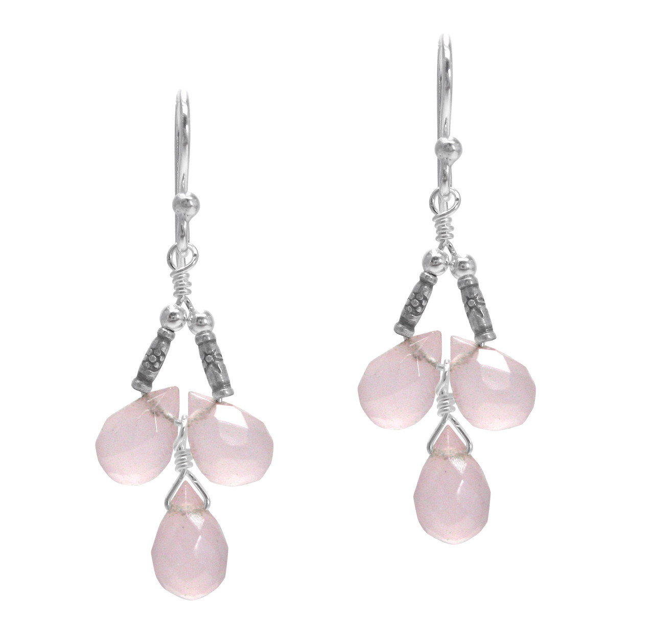 Click the button below to add the Sterling Silver Faceted Teardrops Three Stone Wire-Wrapped Earrings, Pink to your wish list.