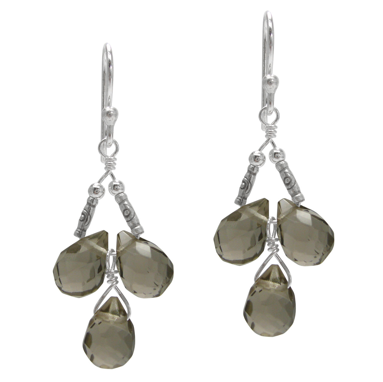 Click the button below to add the Sterling Silver Faceted Teardrops Three Stone Wire-Wrapped Earrings, Smoke to your wish list.